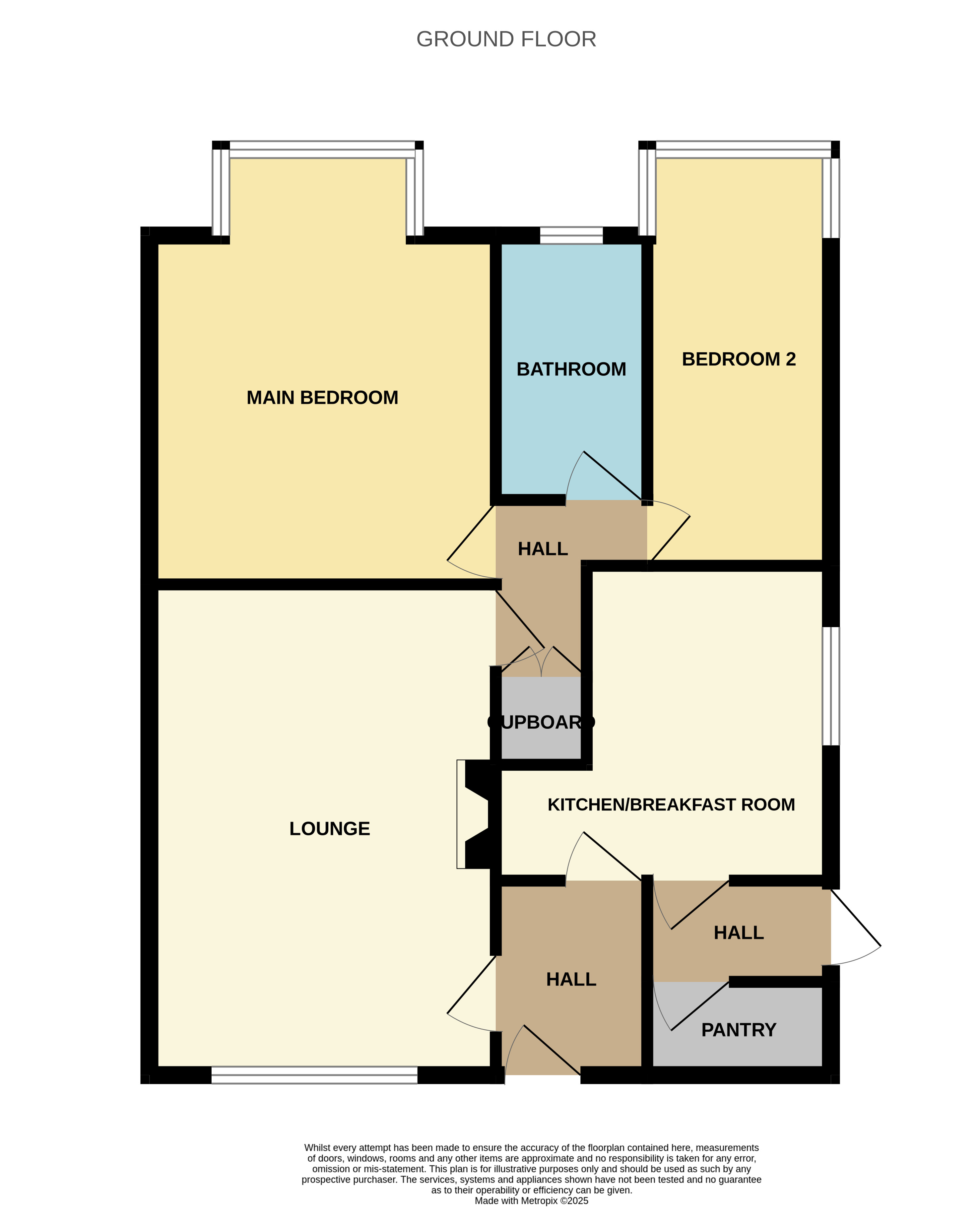 The inner hall provides access to both bedrooms and the bathroom. There is an integrated airing cupboard. The loft hatch is located here, and the loft is boarded with lighting and sockets.