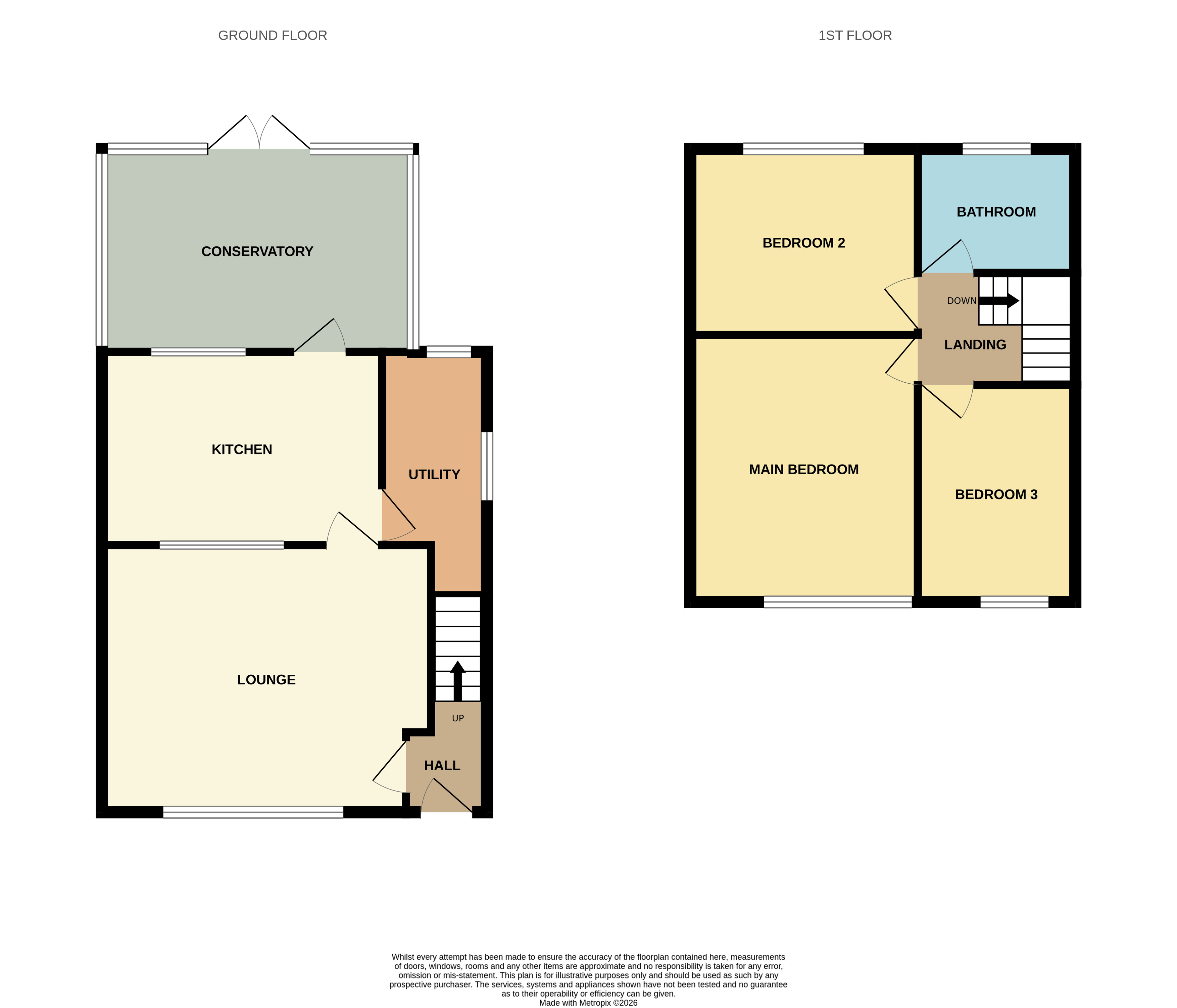 Stairs from the hall rise to the 1st floor landing, which provides access to all 3 bedrooms and the bathroom. The loft hatch is located here.